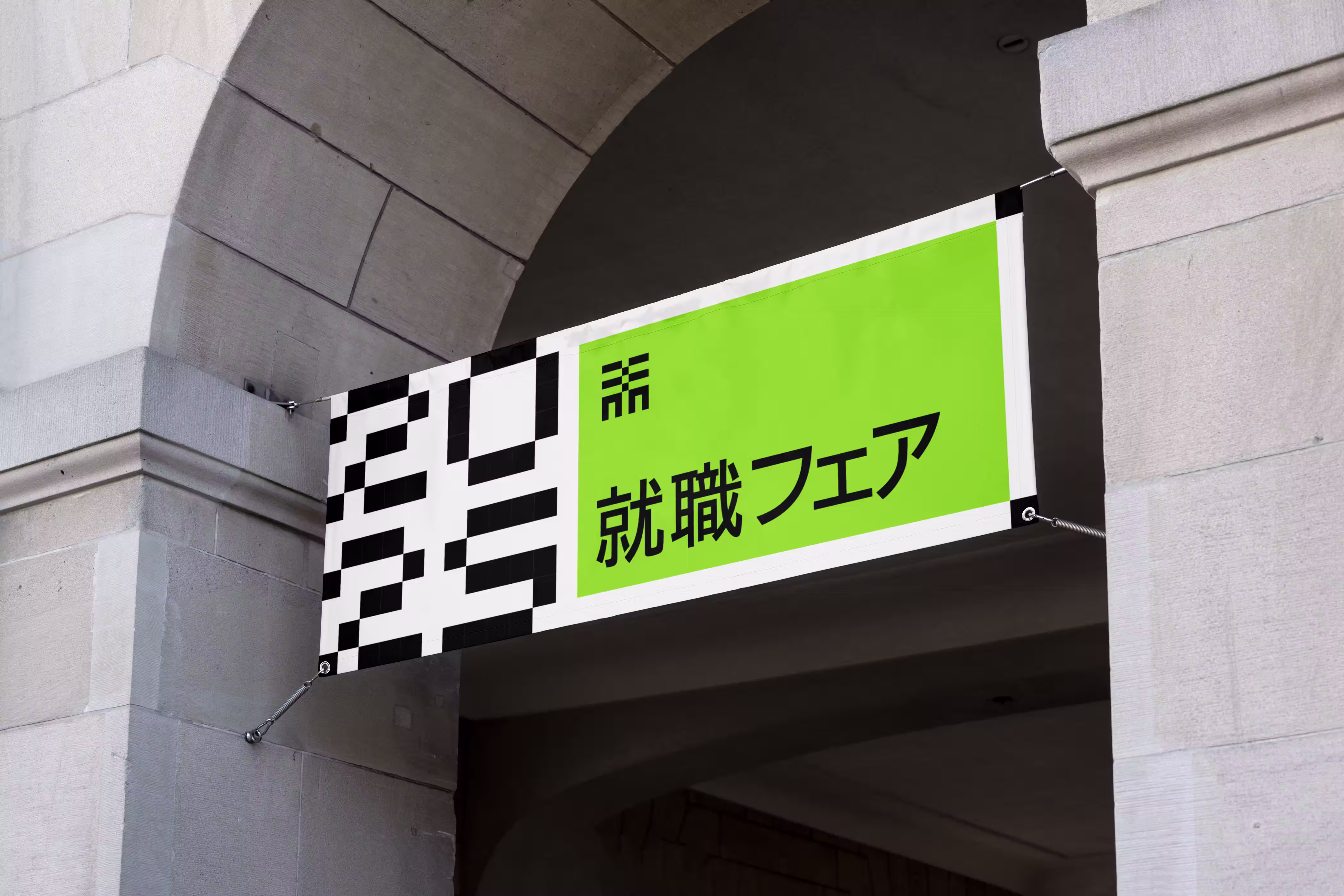 The character was modernized through clean, geometric forms inspired by the ichimatsu moyo (市松模様) checker pattern, which represents uninterrupted prosperity and growth.